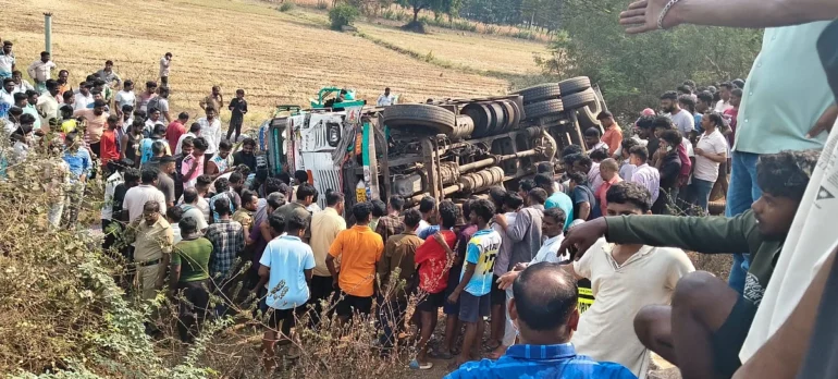 A accident occurred in the Hosapete area, near the tunnel, in Vijayanagara district, resulting in the deaths of four people and injuring 25 others. The incident took place on the Hosapete road, with the exact cause of the accident yet to be determined. The accident has raised concerns about road safety in the region, with authorities expected to investigate the incident and take necessary measures to prevent such accidents in the future.